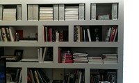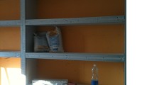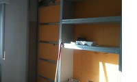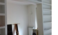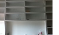 Realizzazione di libreria in cartongesso mostrata in lavorazione e finita.